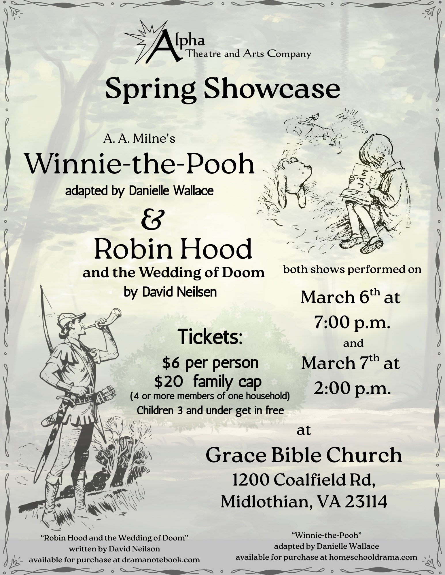 Come join us for a delightful trip to the Hundred Acre Wood to join Christopher Robin, Winnie-the-Pooh, and their friends on a few of their adventures. Then we’ll head to Sherwood Forest to meet Robin Hood and his Merry Men as they thwart the Sheriff of Nottingham’s evil plans!